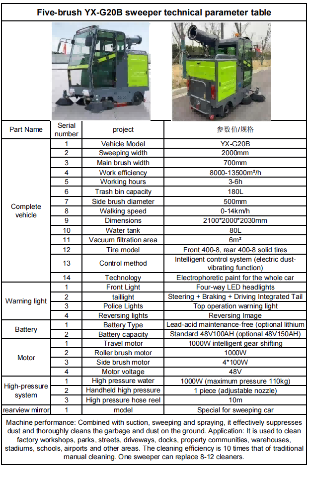 صفائی ستھرائی کی کارکردگی روایتی مینوئل صفائی سے 10 گنا زیادہ ہے۔ ایک سویپر 8-12 کلینرز کی جگہ لے سکتا ہے۔