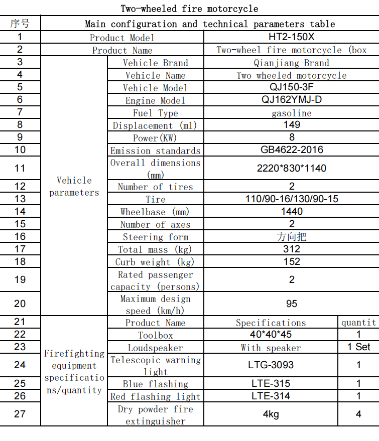 پوری گاڑی کے ذریعہ استعمال ہونے والے چیسس نے استحکام اور بوجھ اٹھانے کی کارکردگی کو بہتر بنایا ہے۔ یہ ایک ہائی پریشر ٹھیک پانی کے اسپرے فائر بجھانے والا آلہ اور دستی موٹرائزڈ فائر پمپ فائر بجھانے والا آلہ سے لیس ہے ، جو مخلوط طریقے سے آگ بجھا سکتا ہے۔